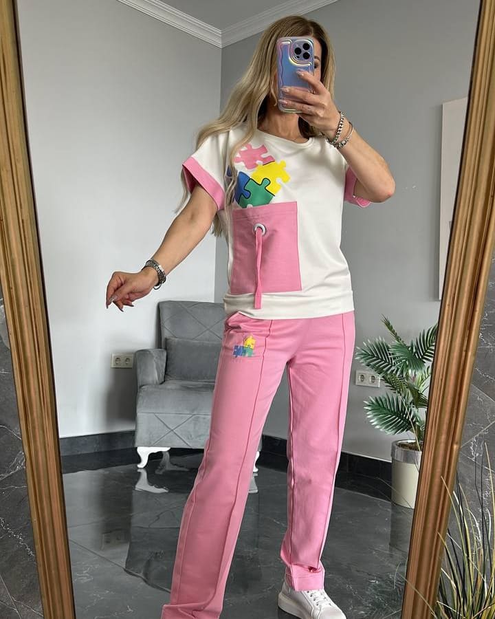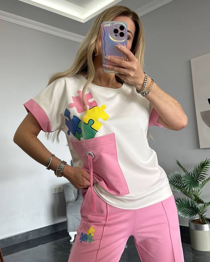 السيدات مجموعة قصيرة الأكمام أعلى والسراويل.