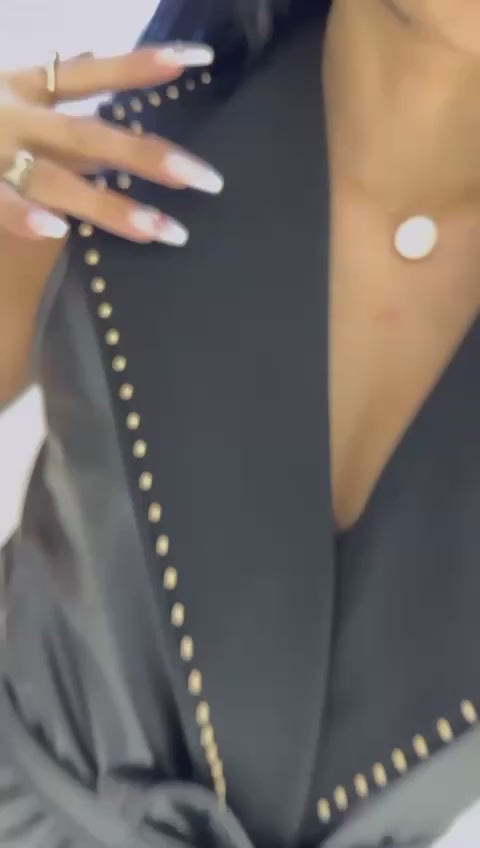 Women's Elegant Sleeveless Long Leather Jacket with Studded Details