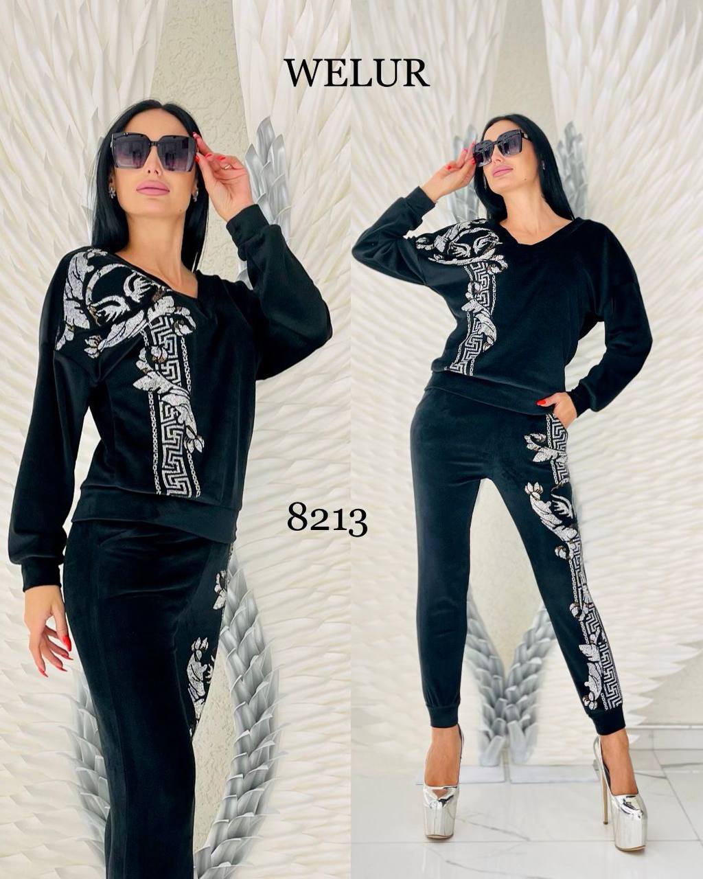 Soft polyester velvet with leopard design studded with stones on the front of the top + spandex, comfortable and soft clothes. -