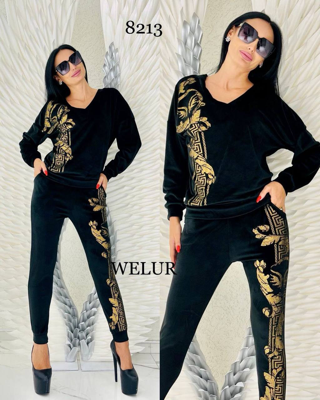Soft polyester velvet with leopard design studded with stones on the front of the top + spandex, comfortable and soft clothes.